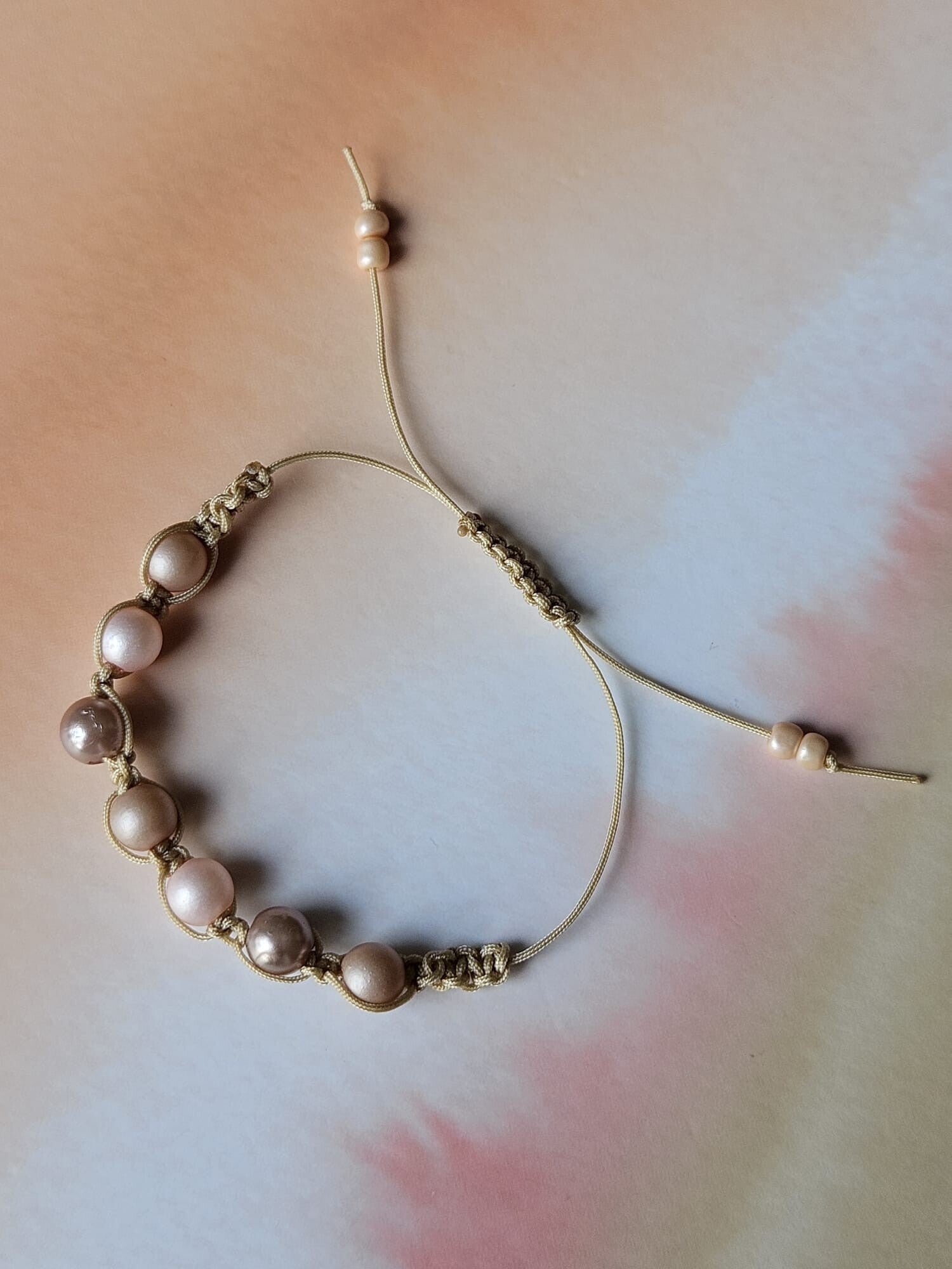 Macramé armbandje Pastelzalm-Bruin Parel